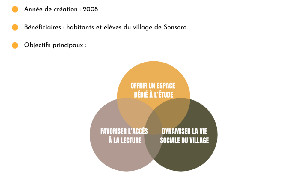 LA BIBLIOTHÈQUE DU VILLAGE DE SONSORO